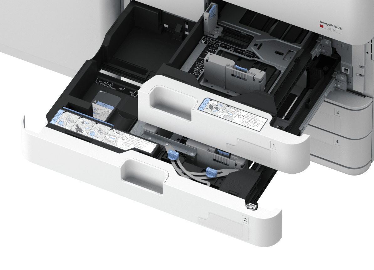 Imprima uma gama de materiais de alta qualidade, incluindo brochuras, pósteres e convites. Desfrute da qualidade líder da indústria com uma resolução de 4800 x 2400 dpi e imprima folhas longas continuamente com a tecnologia de separação a ar.