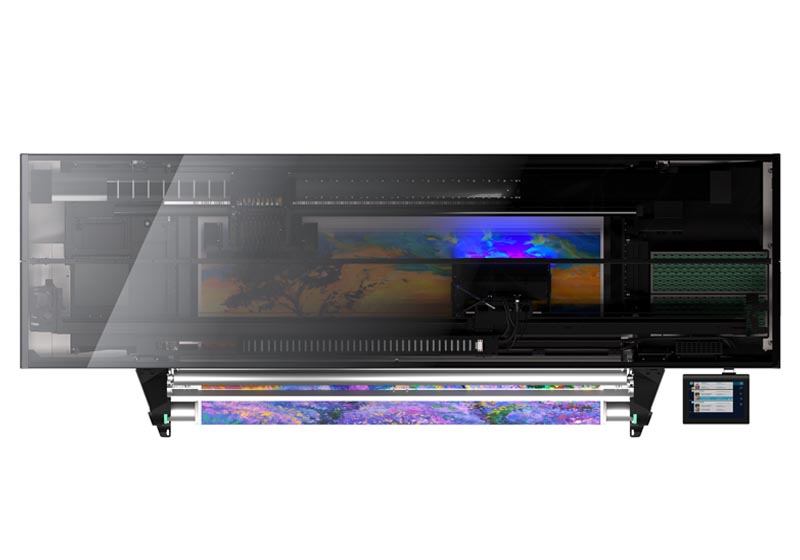 Impressora UVgel de próxima geração com tinteiros flexíveis e acabamento mate/brilhante.