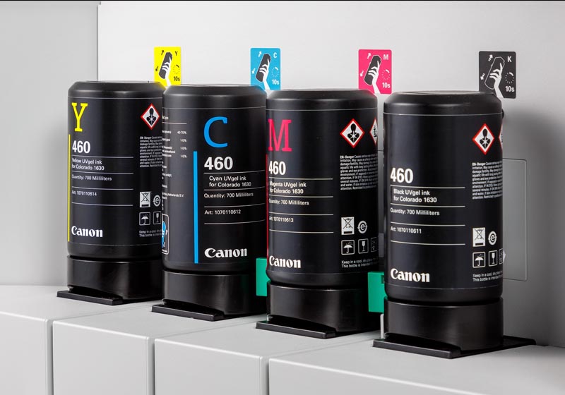 Uma tecnologia única de tipo "impressão seguida de cura" com tintas de gel de secagem instantânea curados com luzes UV LED. A vantagem de utilizar gel em vez de líquidos traduz-se na possibilidade de fornecer mais tinta em menos passagens, sem que esta vaze para dentro ou para cima do suporte. Como resultado, oferece impressões extremamente nítidas com uma ampla gama de cores. Inodora e extremamente resistente.