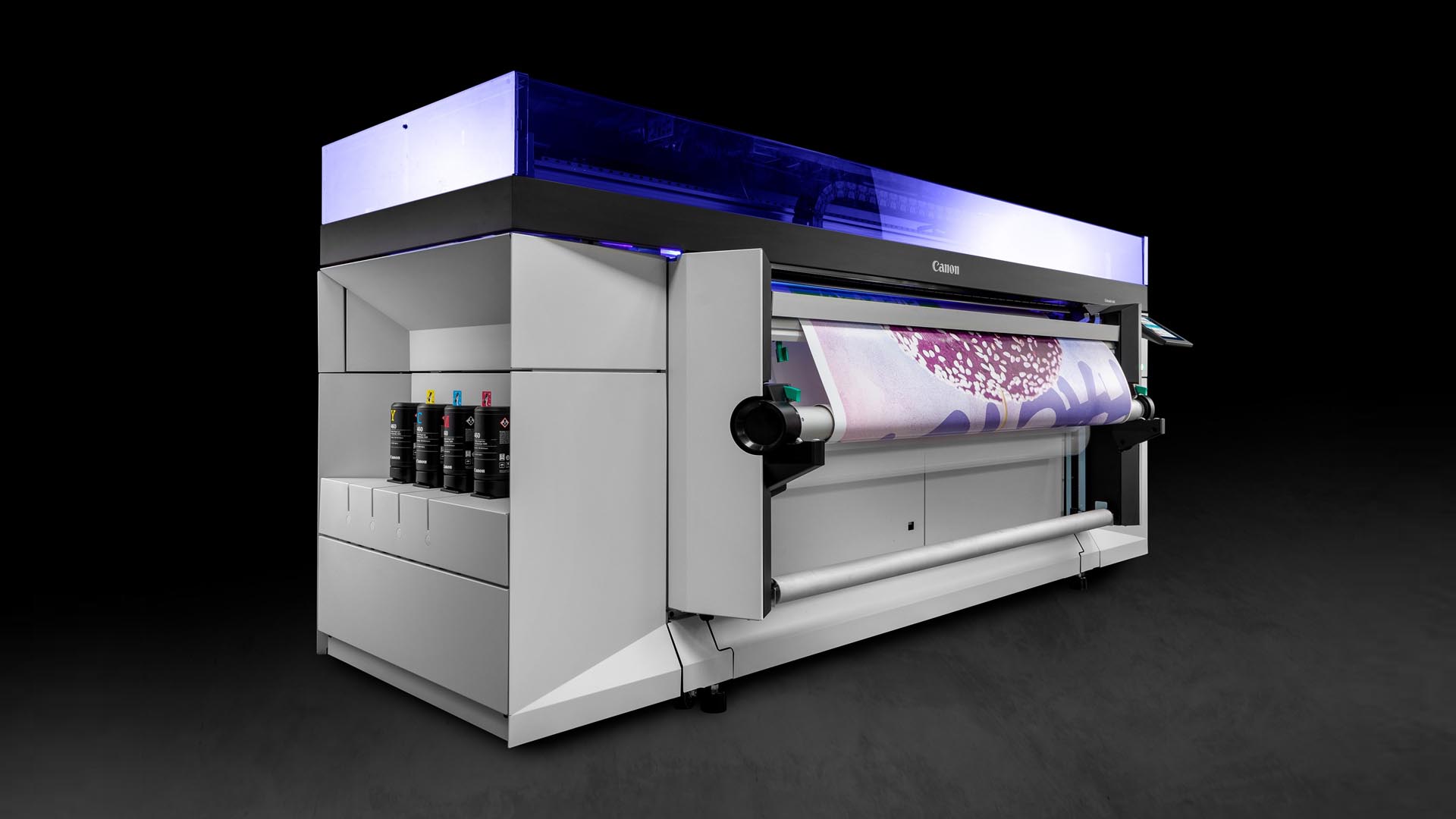 Não necessita de vigiar a impressora: confie na monitorização contÃnua dos nozzles injetores de tinta, na manutenção automática e prática das cabeças de impressão, na alimentação automática dos suportes e no módulo de enrolamento de rolo.